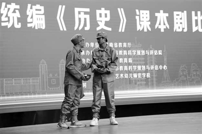為更好推動統(tǒng)編教材的使用,并檢驗教材使用成效,河南省教育廳在第九屆河南省中等職業(yè)學校學生素質(zhì)能力大賽中,設(shè)置了三科教材課本劇賽項,通過活動育人、實踐育人。 圖為統(tǒng)編《歷史》課本劇省級競賽現(xiàn)場。 (資料圖片)