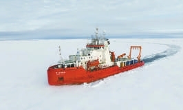②“中山大學極地”號破冰科考船在北冰洋執行科學考察任務。
