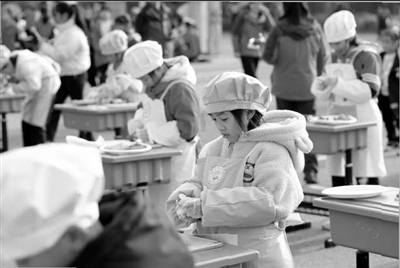 湖南省懷化市通道侗族自治縣禮雅小學學生在進行拼果盤比賽。