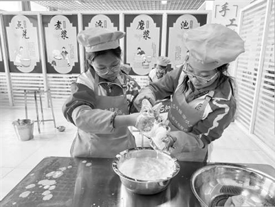 錦湖小學學生在學習濾豆漿。學校供圖