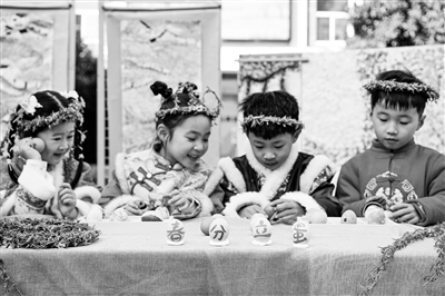 3月18日,在安徽省合肥市廬陽區林店街道榮城幼教集團總園,社區志愿者與孩子們一起繪制彩蛋。3月20日是春分節氣,林店街道團工委聯合轄區幼兒園開展“立蛋迎春分”活動,引導孩子們了解節氣文化。 趙明 攝