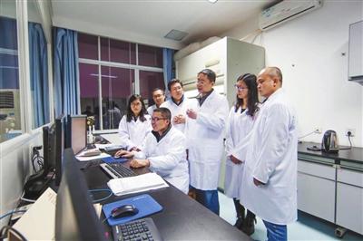 謝明勇院士(右三)及其團隊在做實驗。學校供圖