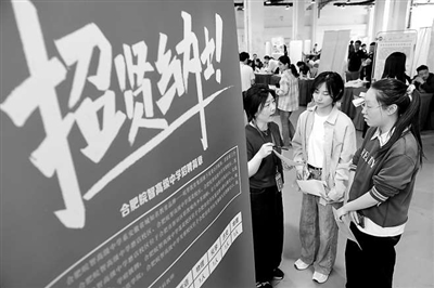 近日,“春暖皖江”2025安徽共青團組織服務青年就業系列活動走進阜陽師范大學。圖為專場招聘現場,求職大學生向用工企業咨詢招聘信息。王彪 攝