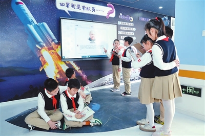 上海市虹口區曲陽第四小學學生與智能體“錢學森”交流航天知識。學校供圖