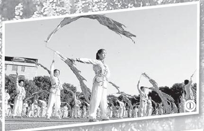 ①湖南省永州市新田縣龍泉四小學生們在嫻熟地舞動民間傳統運動彩帶龍。 通訊員 劉貴雄 鄭軍 攝