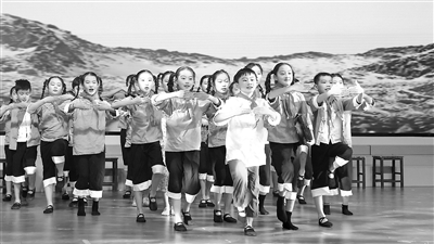 ①臨朐縣東城街道文昌小學學生正在演繹課本劇《紅色先鋒》。