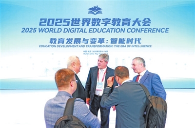 2025世界數(shù)字教育大會(huì)參會(huì)人員在現(xiàn)場(chǎng)熱烈討論。 本報(bào)記者 張勁松 攝