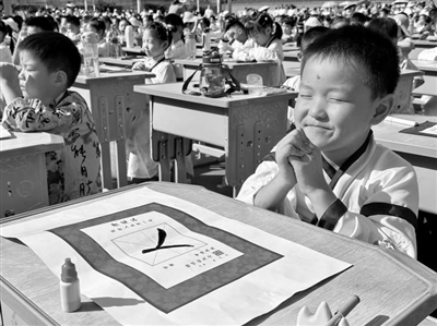 一年級新生舉行開筆禮(右)。 萬美蘭 王麗君 攝