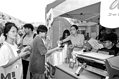 在公益“咖”位區,“一日咖啡師”們專注制作手沖咖啡,每售出一杯“善意咖啡”,相應款項就將匯入慈善基金。