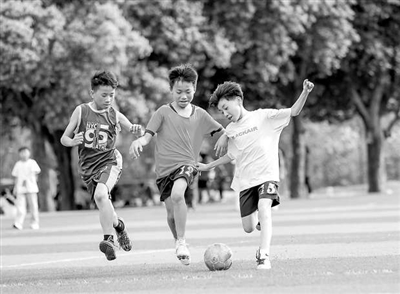 貴州省從江縣剛邊壯族鄉中心小學的學生在進行足球對抗賽訓練。 羅京來 攝