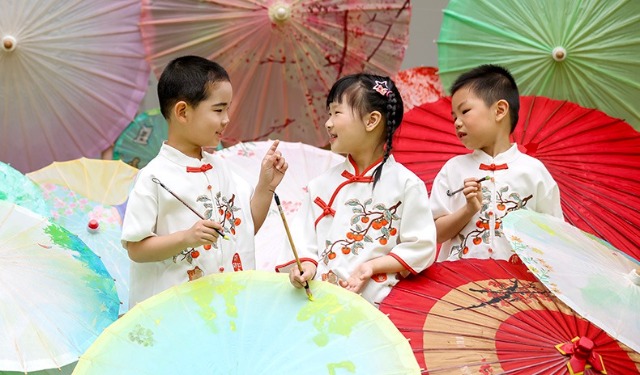 日前,福建省福州市鼓樓區水部街道延安幼兒園內,一場彩繪活動正在進行。教師細致講解國家級非遺項目福州油紙傘制作技藝,孩子們將荷花、小魚等圖案融于油紙傘畫中,感受中華優秀傳統文化的獨特魅力。 謝貴明 攝