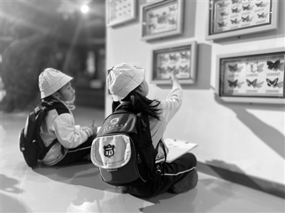 ②幼兒觀察蝴蝶標本。遼寧省葫蘆島市蓮花第一幼兒園 供圖