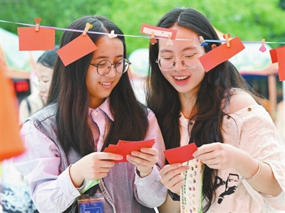 5月25日,在福州大學心理嘉年華活動上,學生在觀看心理健康知識問答題卡。當日是大學生心理健康日,以“培養積極心態 增強心理韌性”為主題的第21屆“5·25”心理嘉年華活動在福州大學舉辦。 新華社記者 姜克紅 攝