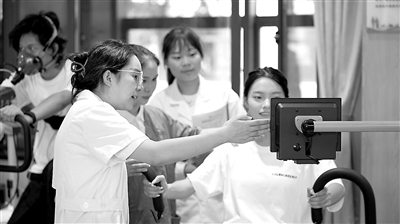① 學生正在進行智慧康養虛擬仿真實訓。