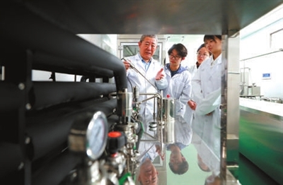 在浙江農(nóng)林大學(xué)校內(nèi)食品加工中試基地,龐林江教授(左一)在指導(dǎo)食品科學(xué)與工程(糧油儲檢)專業(yè)定向農(nóng)科生進(jìn)行專業(yè)實習(xí)。