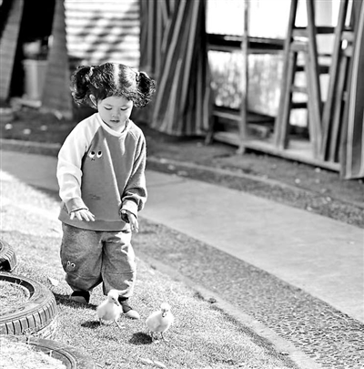 ③幼兒陪著小鴨去散步。 杭州市西湖區溪蝶幼兒園供圖