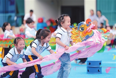 近日,湖南省永州市道縣教育局示范幼兒園的小朋友在參加旱地“龍舟”比賽。該幼兒園舉行“品民俗 賽龍舟”趣味比賽活動,讓孩子們在運動中感受傳統民俗文化魅力。
