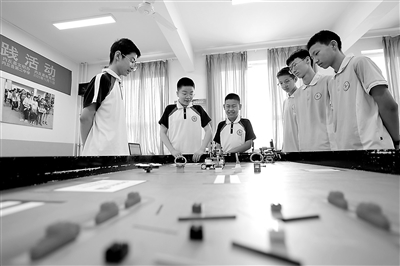 5月30日,內丘縣第二中學學生在進行機器人競賽活動。