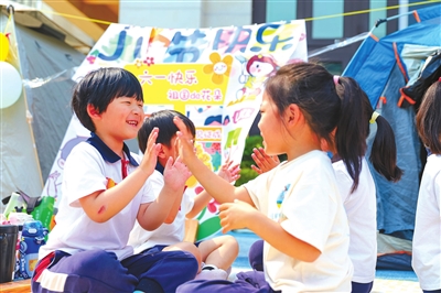 題圖為山東省青島市李滄區青山路幼兒園的小朋友在玩游戲。張鷹 攝
