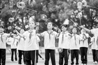 近日,湖北省襄陽市樊城區(qū)竹條中心小學的學生利用課間在操場上練習抖空竹。李旭暉 攝