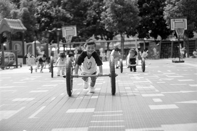 近日,貴州省黔西市雨朵鎮(zhèn)中心幼兒園的孩子們在操場上滾車輪。周訓超 攝