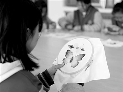 “噠噠噠——”伴隨著縫紉機的轉動聲,位于內蒙古的鄂托克前旗職業中學的學生將彩色布料裁剪、折疊、縫制,再配上漂亮的飾品、紋樣,一枚枚精致的布藝胸針便躍然指尖。而在百米之外的剪紙教室,紅色紙張在剪刀下“簌簌”作響,一幅描繪草原風光的剪紙作品逐漸成形。