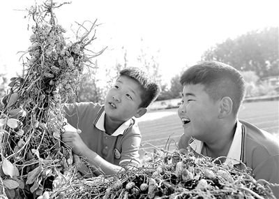 山東省棗莊市嶧城區(qū)底閣鎮(zhèn)前王小學(xué)學(xué)生體驗(yàn)勞動(dòng)收獲的快樂。孫晉之 攝
