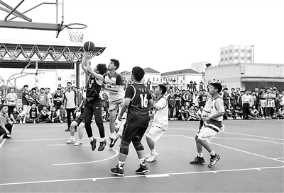 陽光球場上,籃球運動員們展開激烈角逐。