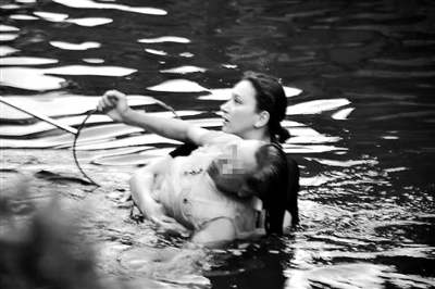 6月23日清晨,莎河娜斯在浙江紹興對落水老人進行施救。