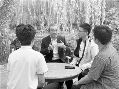 初夏的一天,北京大學朗潤園荷花池畔,林毅夫和4名新結構經濟學實驗班學生圍坐在一張古樸的石桌旁。