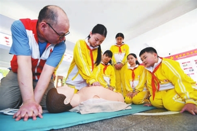 近日,貴州省貴陽市南明區紅十字會急救培訓師在南明小學對學生進行心肺復蘇急救培訓。趙松 攝