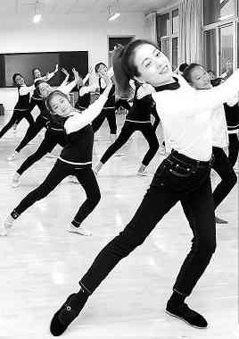 山東省壽光世紀教育集團舞蹈社團的學生在訓練。