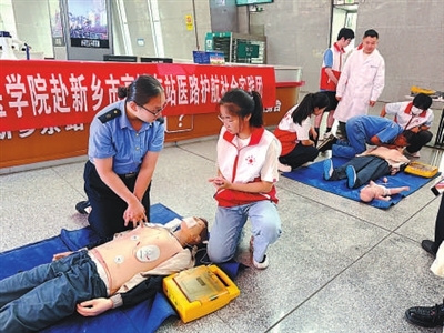 活動現場,新鄉市高鐵東站候車大廳變身“流動急救課堂”,讓心肺復蘇、AED(自動體外除顫器)使用方法及海姆立克急救法等專業知識,化作公眾觸手可及的“生命錦囊”。