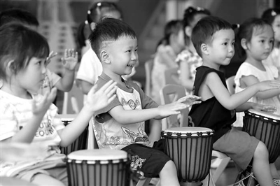 小朋友在學習非洲鼓。