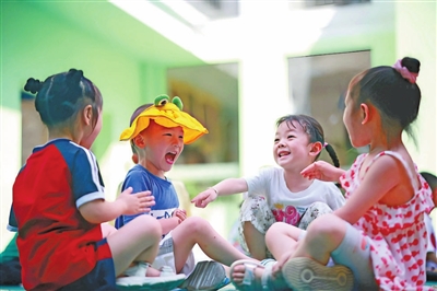 暑假期間,湖南省懷化市通道侗族自治縣積極引導學校、社區、社會組織等多方力量開展暑期托管服務,讓孩子們在安全、快樂的環境中度過一個有意義的假期,也為雙職工家庭解決“看護難”問題。圖為孩子們在懷化市通道侗族自治縣嘉鑫苑社區暑期托管點做游戲。