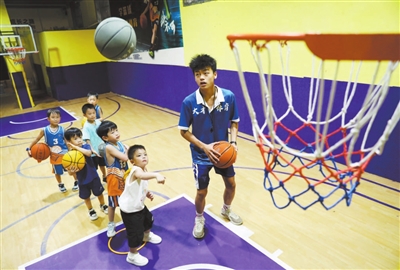 暑假期間,孩子們通過參加籃球等運動項目,強身健體、充實假期。