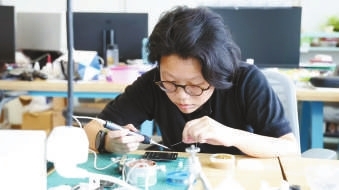 香港科技大學(xué)(廣州)紅鳥碩士班一期學(xué)生蔡嘉雯正在設(shè)計創(chuàng)新產(chǎn)品。本報記者 李柯 攝