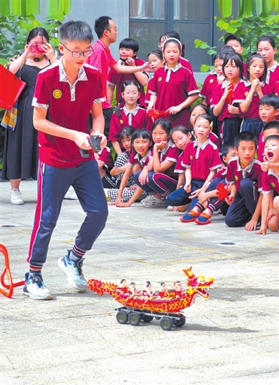 廣東省佛山市禪城區(qū)瀾石小學(xué)STEM課程開展彩泥龍舟障礙競(jìng)速賽。學(xué)校供圖