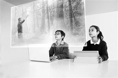教師通過增強現實屏幕為學生授課。