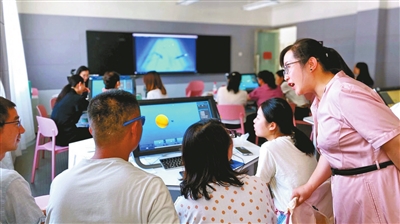 寧夏銀川市慶興區中小學教師暑期參加數字化教學培訓。 資料圖片