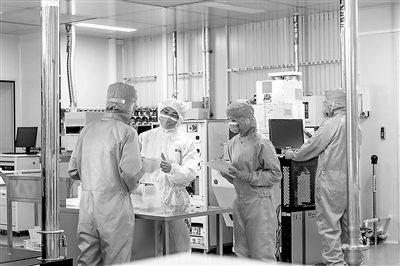 電子科技大學集成電路科學與工程學院(示范性微電子學院)院長張萬里(左二)在指導學生做實驗。學校供圖
