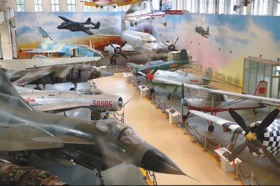 北京航空航天博物館內陳列的飛機鳥瞰圖。 本報見習記者劉丞 攝