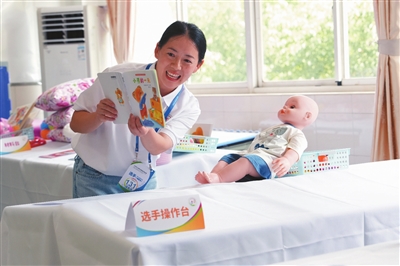 日前,2025年上海市托幼行業(yè)職業(yè)技能大賽舉行,來(lái)自全市的500余名托幼服務(wù)一線從業(yè)人員同臺(tái)競(jìng)技,旨在進(jìn)一步提升全市托幼行業(yè)從業(yè)人員的專業(yè)能力和綜合素養(yǎng)。圖為保育員賽項(xiàng)選手技能操作考核現(xiàn)場(chǎng)。本報(bào)記者 任朝霞 文 通訊員 尚凱 攝