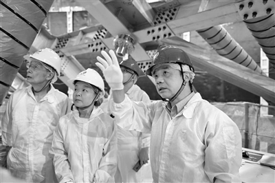 王貽芳院士(右一)在江門中微子實驗建設現場。中國科學院高能物理研究所供圖