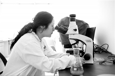 學(xué)生在教師趙璐的指導(dǎo)下進(jìn)行微藻實驗。 學(xué)校供圖