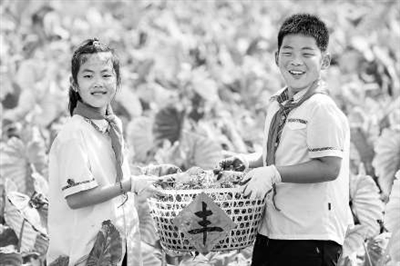 9月23日,江蘇省海安高新區實驗小學學生在田間采收芋頭。 翟偉凱 攝