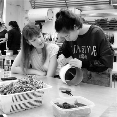 湖南師范大學美術學院學生(右)與法國大學生共同參與設計工作坊。 湖南師范大學供圖