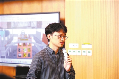 清華大學科學博物館志愿者楊明繁正在為記者們講解星盤。