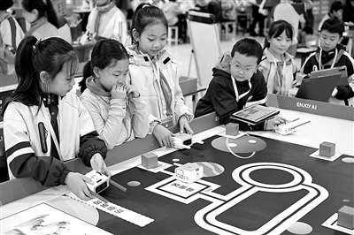 近日,西安市新城區舉辦2025年學生信息素養提升實踐活動,全區700余名中小學生參加。該活動以“實踐、探索、創新”為主題,共設置11個競賽項目,涵蓋人工智能、機器人、航天創意設計等前沿領域,引導學生在實踐中提升信息素養,激發創新熱情。圖為學生在參加機器人挑戰賽。