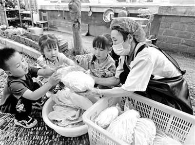 ③廚師教幼兒認(rèn)識蔬菜。方笑娟 供圖